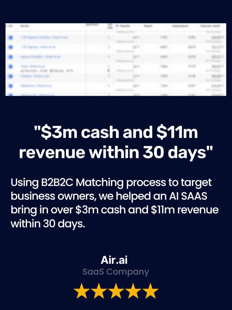It depends on a few factors—your offer, the market, your sales process—but most clients begin seeing traction within the first few weeks. Some see measurable wins within 24–72 hours. Others take a couple of months to optimize and hit stride. A few hit a home run out of the gate.